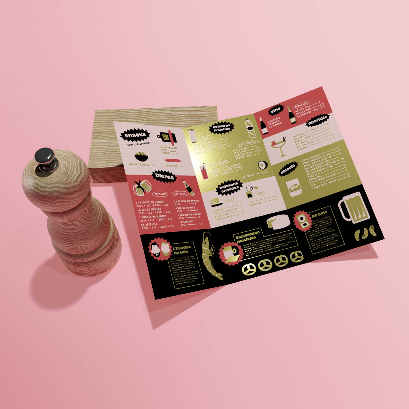 La typographie principale reflète la chaleur et la convivialité du lieu tout en équilibrant l’ensemble avec une touche de modernité.